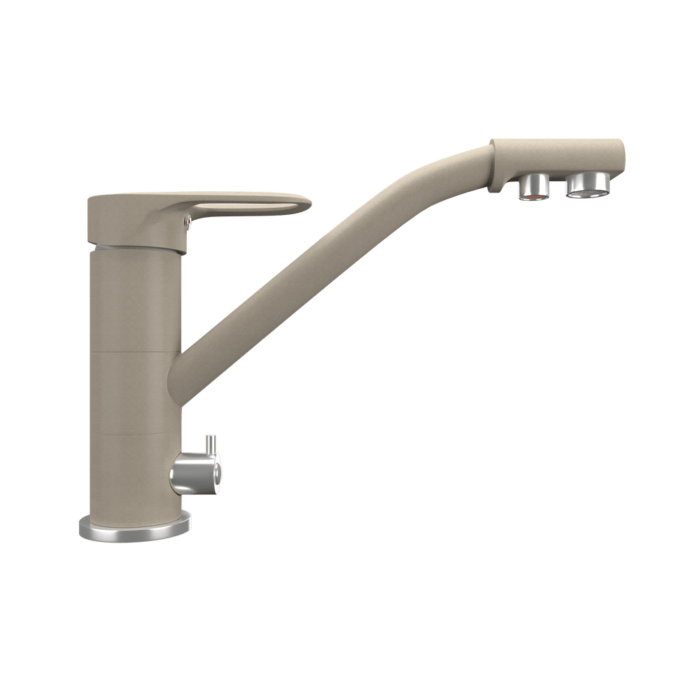 Тип смесителя управление Смеситель кухонный двухрычажный с дополнительным изливом для фильтрованной воды