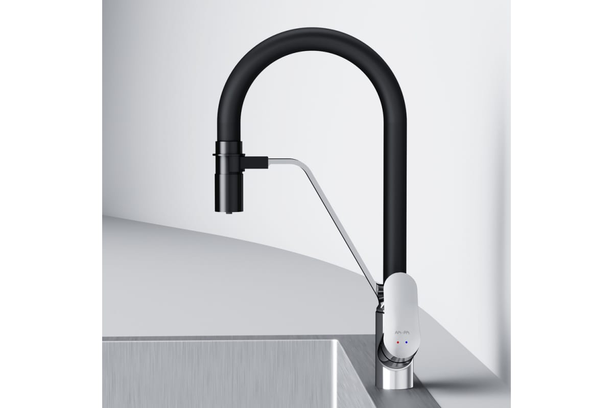 Смеситель для кухни AM.PM Like с каналом для питьевой воды и гибким изливом, хром F8007802 стильный и функциональный с профессиональным изливом и встроенным каналом для питьевой воды из культовой коллекции Like.