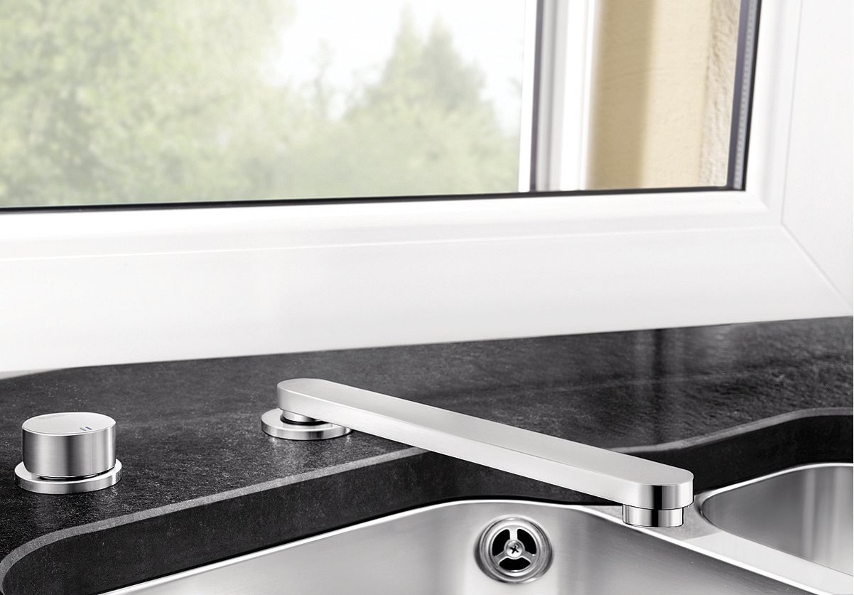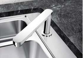 Уникально: в комбинации с мойкой BLANCO ATTIKA 60/A смеситель ELOSCOPE-F II задвигается ниже уровня канта мойки