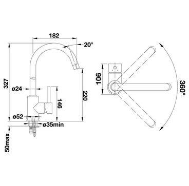 Глубина угол поворота излива: 360 °
