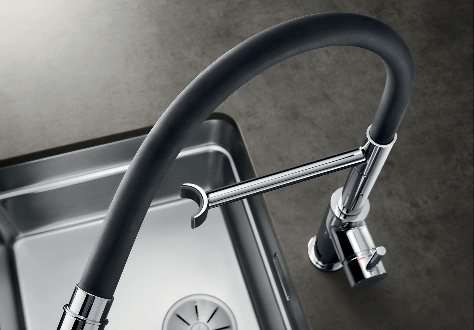 Гибкий черный резиновый шланг обеспечивает оптимальный диапазон движения