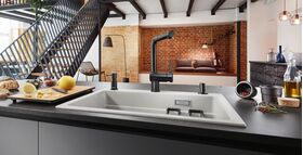 Новый цвет BLANCO матовый черный всегда прекрасен. Ненавязчивый и в то же время оригинальный: глубина нового цвета очаровывает. Смесители в новом цвете отлично сочетаются с мойками, чашами и столешницами BLANCO, также как и со многими элементами дизайна на современной кухне. Особенно хорошо новый цвет сочетается с мойками в серых тонах или новом цвете бетон. Особая поверхность: идеальный матовый черный цвет до мельчайших деталей для подчеркнутого контраста со светлыми мойками или мойками из нержавеющей стали с площадкой под смеситель.