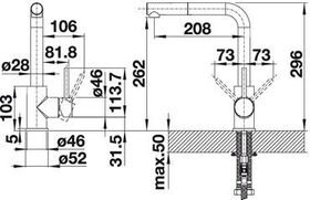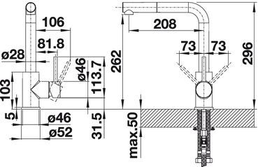 Максимальная толщина столещницы: 50 мм