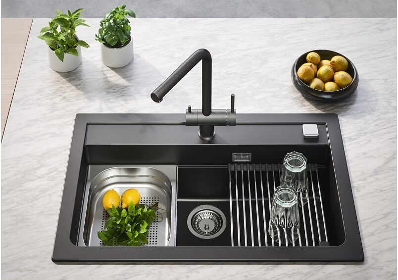 С помощью правого рычага контролируется подача холодной и горячей воды для повседневного домашнего использования, а с помощью левого рычага осуществляется подача свежефильтрованной чистой питьевой воды.