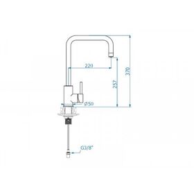 Высота изделия составляет 257 мм, длина излива - 222 мм, необходимо учесть эти параметры при подборе смесителя под мойку.