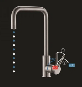 Смеситель Dual объединяет сразу две функции - питьевая и обычная вода из одного смесителя. Исключается смешивание питьевой воды с обычной.