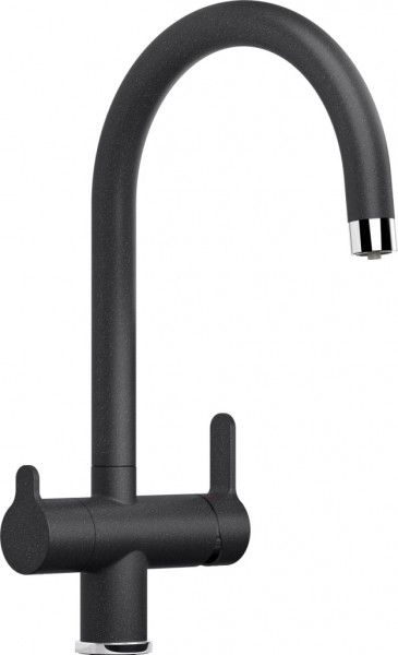 Кухонный смеситель с подключением к фильтру для питьевой воды. Имеет раздельные рычаги управления эргономичной формы.