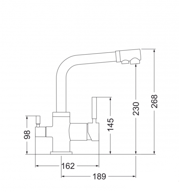 Однорычаговое управление. Форма рукоятки сделана для плавного переключения режимов напора воды