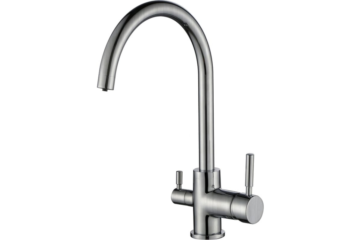 Кухонный кран в мойку. Сделан из латуни, покрытие под сатин. Смеситель для кухни, подходит в любую сатиновую мойку (универсальный). Однорычажное управление поможет легко регулировать подачу воды.