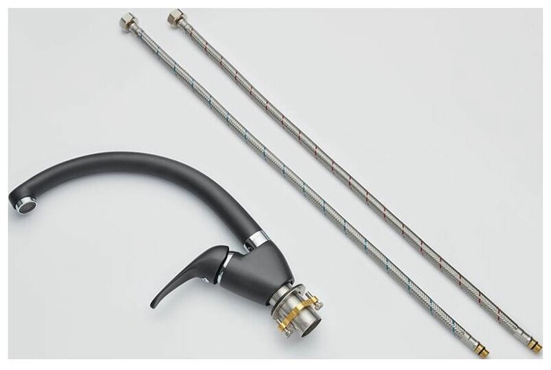 В комплекте идут: Смеситель, гибкая подводка 500 мм, крепеж.