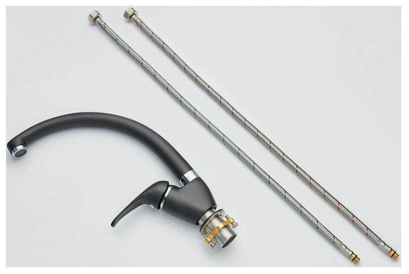 В комплекте идут: Смеситель, гибкая подводка 500 мм, крепеж.