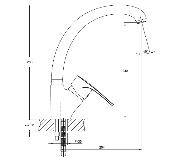 Смеситель изготовлен из современных материалов. За счет специального покрытия обеспечивается легкий и простой уход. Поверхность смесителя наделена защитой от механических повреждений, высоких температур и экологически совершенно безопасна. Однорычажная система управления. Поворотный излив с аэратором. Керамический картридж диаметром 40 мм.