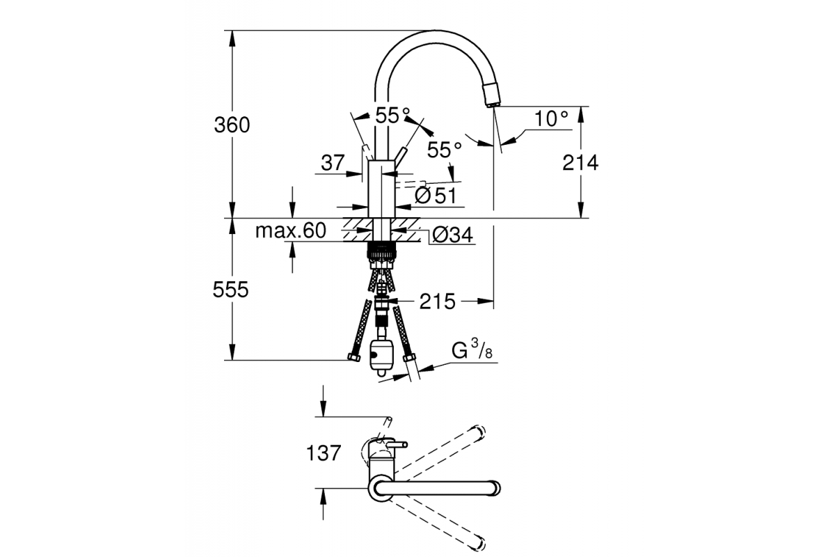Преимущества Grohe Concetto New с высоким выдвижным изливом