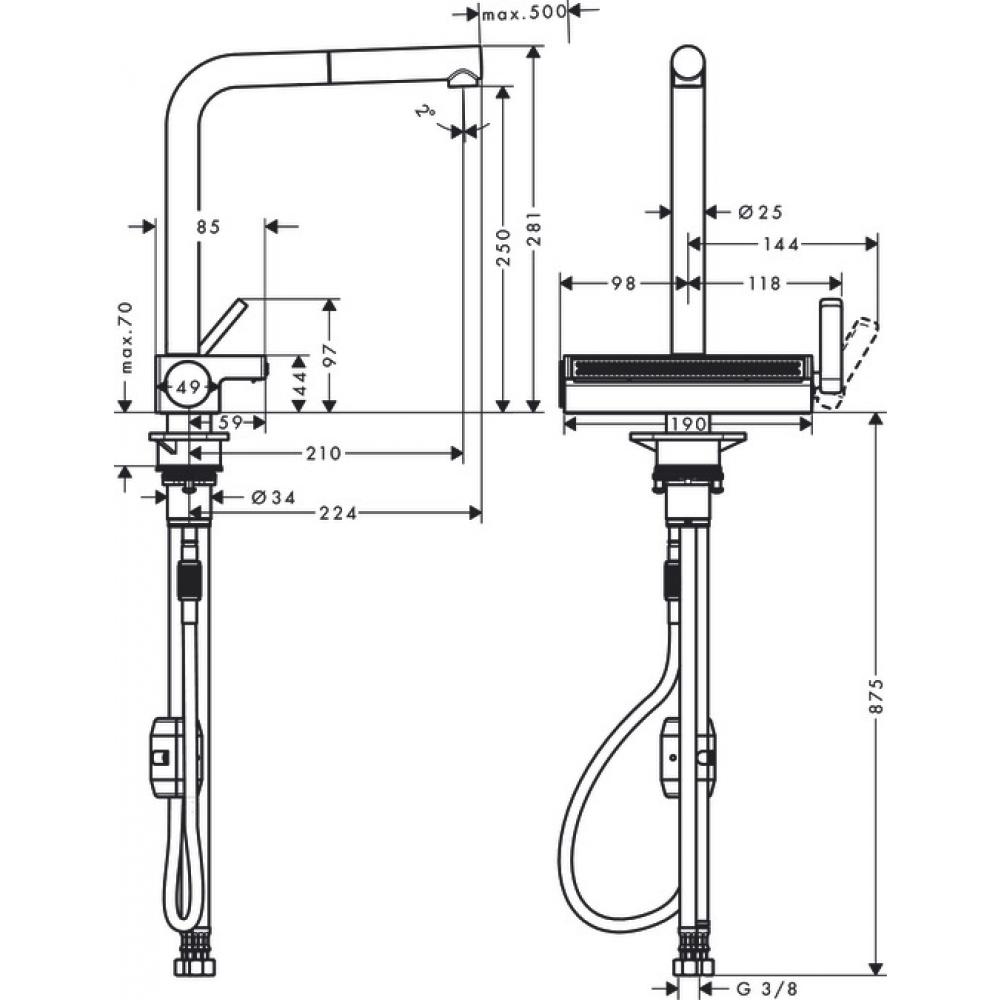 угол поворота излива: регулировка на 3 уровня на 60°, 110° или 150°