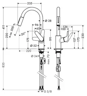 угол поворота излива: 150°
