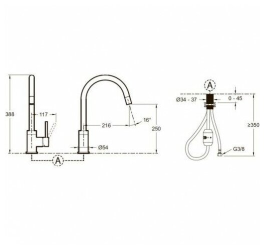 аэратор, система быстрого монтажа, Выдвижной, Гибкая подводка, Лейка, Поворотный