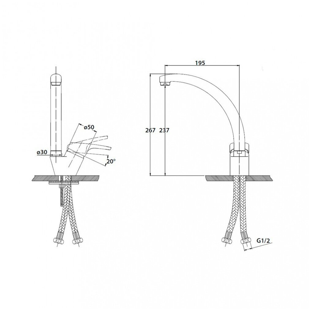 Аэратор,Поворотный излив,Гибкая подводка