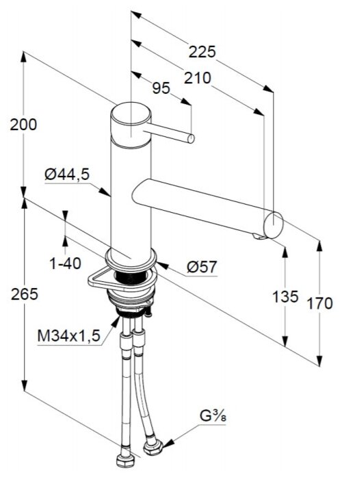 аэратор, поворотный излив, система быстрого монтажа, Гибкая подводка