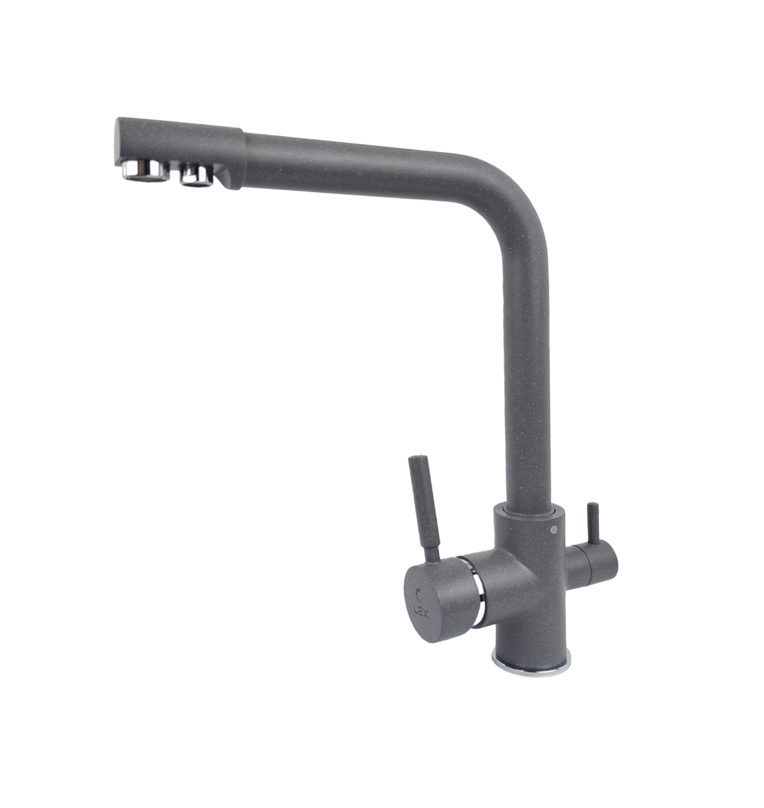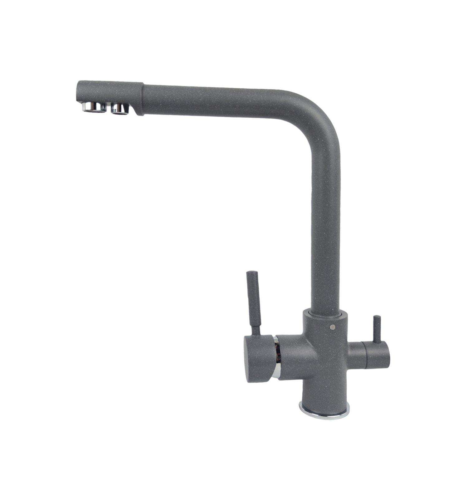 Высокий поворотный двойной излив, Выход для питьевой воды, Гибкая подводка 400 мм