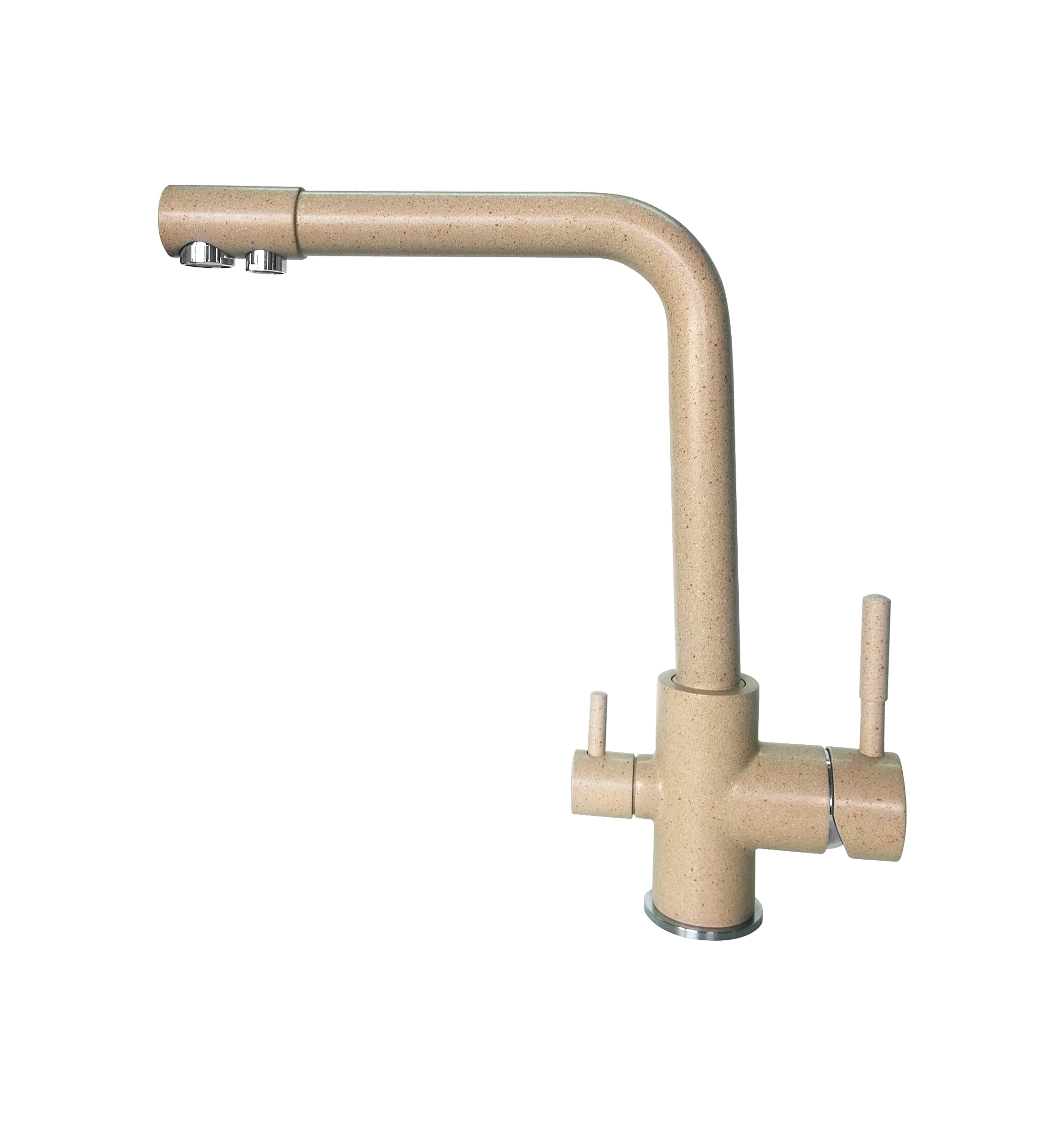 Высокий поворотный двойной излив, Выход для питьевой воды, Гибкая подводка 400 мм