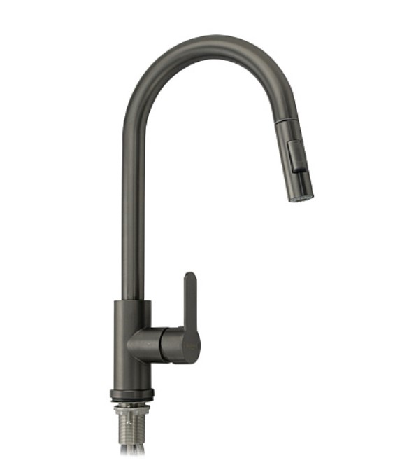 Смеситель для кухонной мойки и раковин, вытяжной излив - лейка с переключением режимов подачи воды, литой корпус графит, из нержавеющей стали марка 304, шаровый,