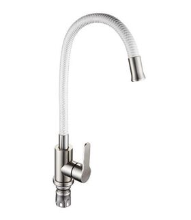 Смеситель для кухонной мойки и раковин, литой матовый корпус, из нержавеющей стали марка 304, с высоким гибким изливом белого цвета, полосатый, с аэратором для экономии воды, шаровый,