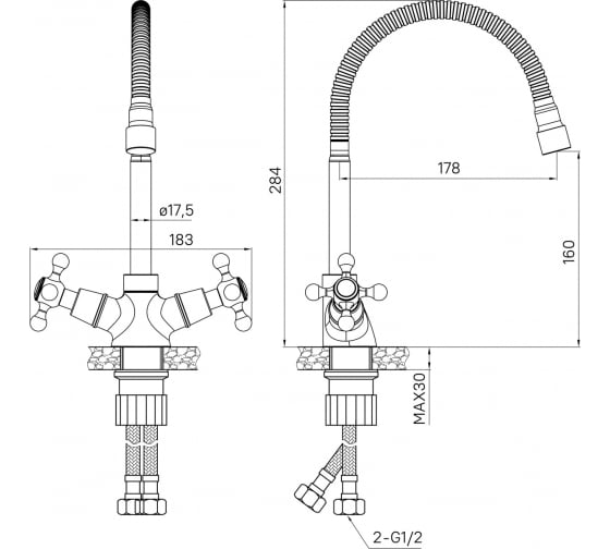 Смеситель для кухни Milardo Duplex с гибким изливом DUPSB0FM05 – стремление к минимализму, воплощенное в оригинальной форме. Удобные крестообразные ручки с увеличенным углом поворота обеспечивает точную регулировку температуры и напора воды. Гибкий полупрофессиональный излив позволяет не только тщательно промыть саму раковину, но и набрать воды в емкость любой формы и размера, разместив ее рядом, что невероятно удобно.