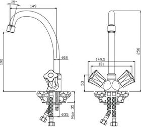 Смеситель для кухни OLIVE'S 21432VG классического дизайна VIGO с уникальными индикаторами холодной и горячей воды на маховиках.