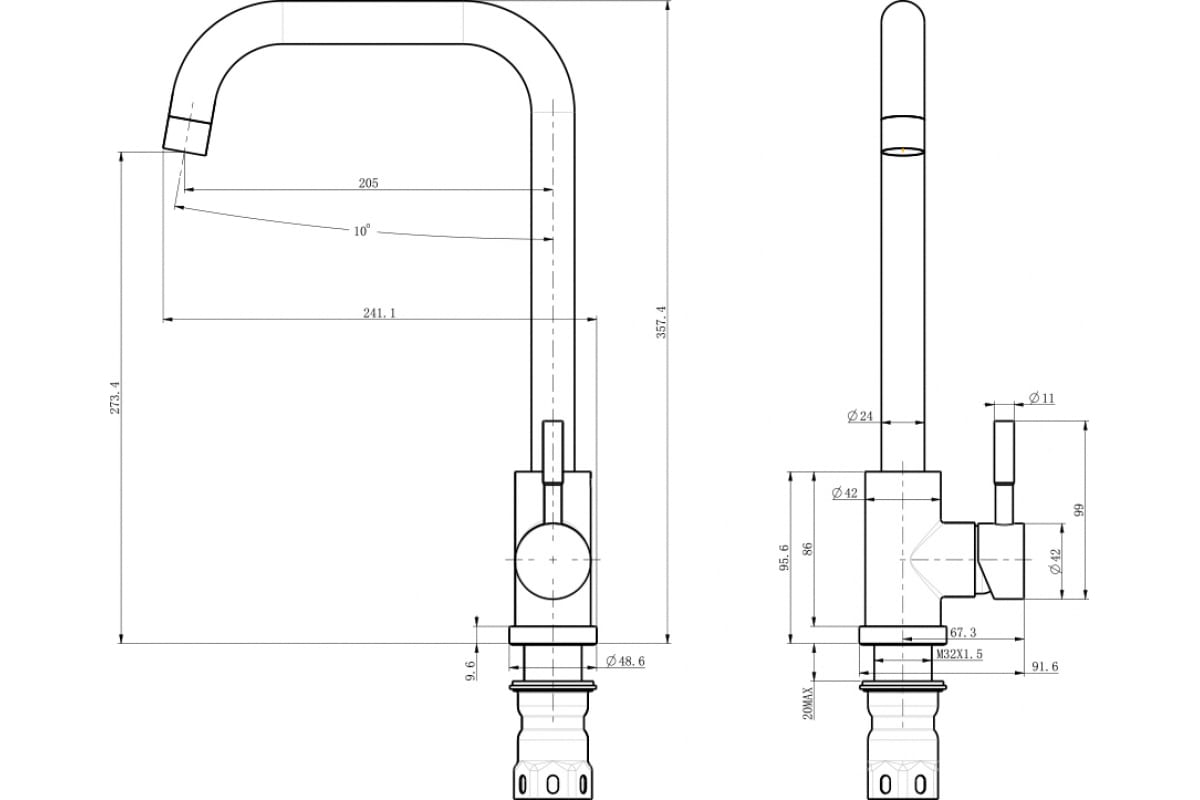 Высота смесителя