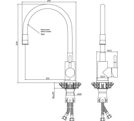 Технические характеристики OLIVE'S Balear с гибким изливом, нержавеющая сталь