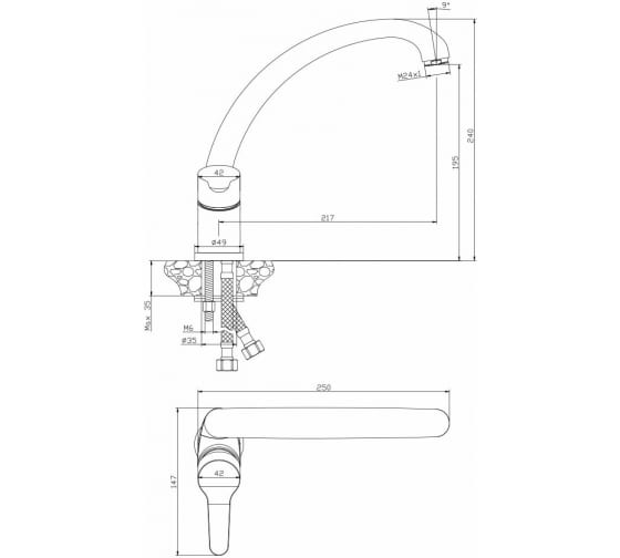 Смеситель комплектуется усиленным крепежом из нержавеющей стали с ребром жесткости.
