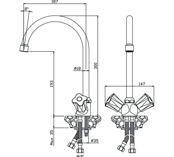 Смеситель комплектуется усиленным крепежом из нержавеющей стали с ребром жесткости.