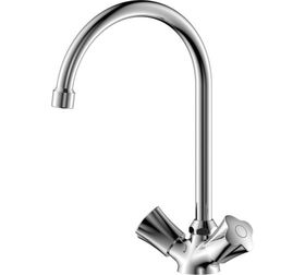 Смеситель для кухни OLIVE'S VIGO 21430VG обладает прочным и стильным корпусом. Изделие фиксируется на раковину в кухне и предназначено для подачи воды. Конструкция обладает поворотным изливом, двумя кран-буксами и пластиковым аэратором. Корпус изготовлен из латуни, покрытой двумя слоями никель-хрома для защиты смесителя от коррозии.