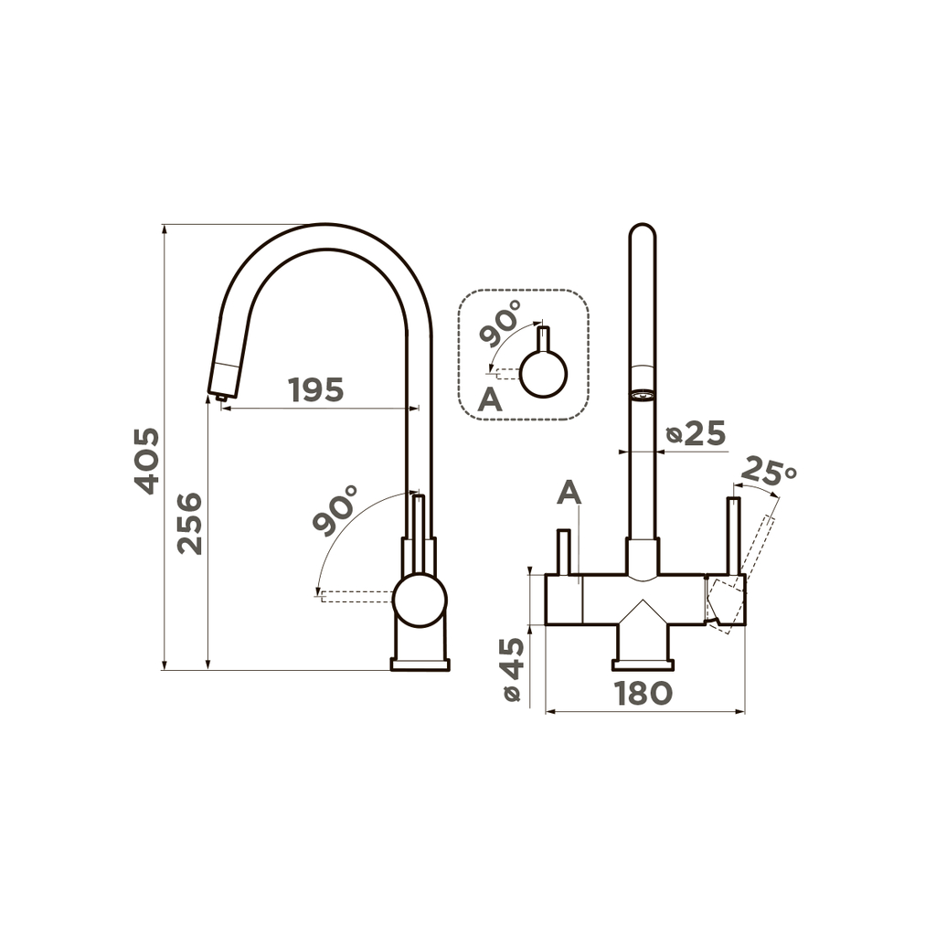 Omoikiri Akita - кухонный смеситель с высоким поворотным изливом и возможностью подключения к фильтру для питьевой воды. Фильтрованная вода подается по отдельной трубке и не смешивается с водопроводной водой. Для управления подачей чистой воды имеется отдельный рычаг управления. Высокий излив обеспечивает максимально удобное использование смесителя, так как удобно наполнять крупногабаритную посуду (кастрюли, вазы, кувшины).
