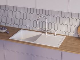 Смеситель произведен из высококачественной японской нержавеющей стали 18/8 - максимально экологичного материала для современного дома. Оборудован керамическим картриджем 35 мм. Аэратор изготовлен из пластика, благодаря чему на нем никогда не появятся известковый налет и ржавчина.