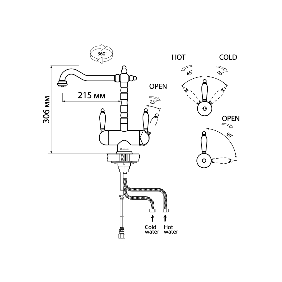 Классический дизайн и удобство использования, благодаря высокому изливу;