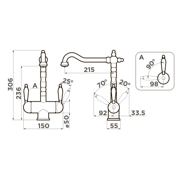 Классический дизайн и удобство использования благодаря высокому изливу.