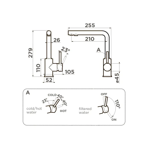 Новая удобная технология системы ручки 2 в 1 Multi позволяет переключить с водопроводной на фильтрованную воду в одно касание.
