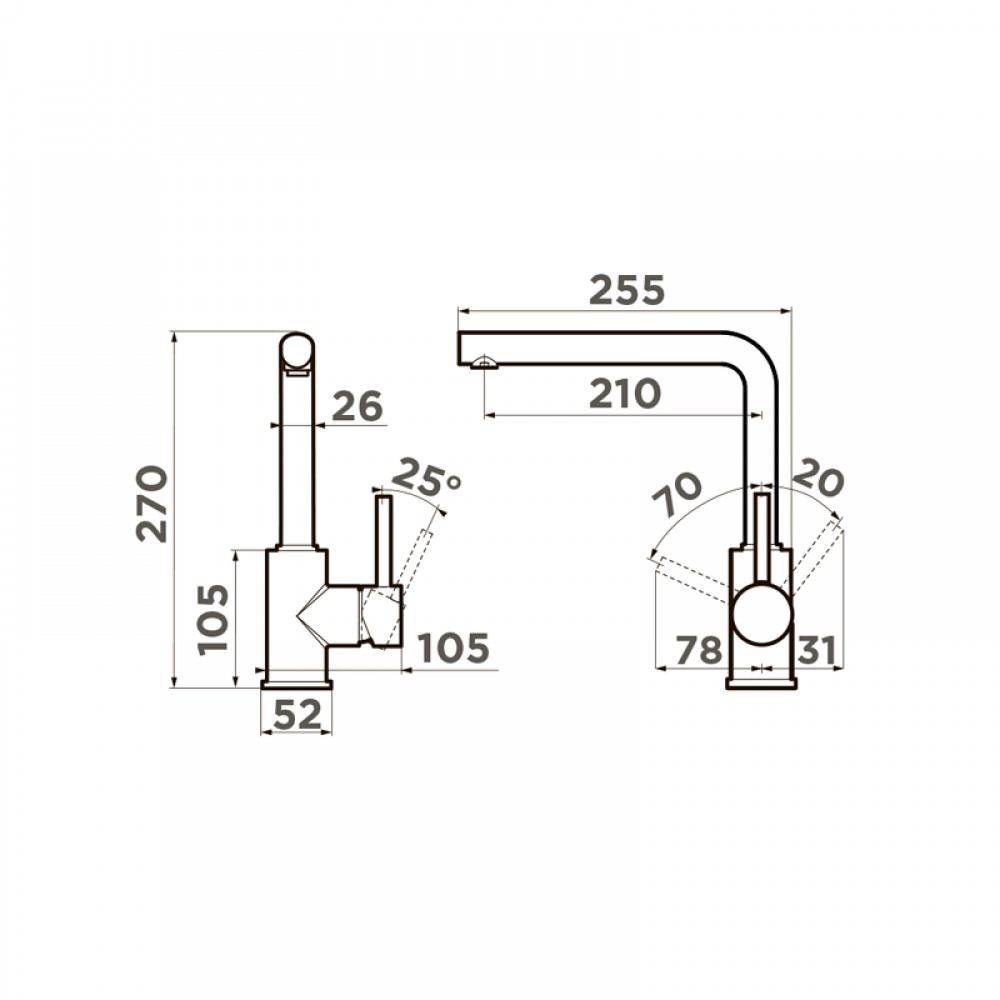 Угол поворота излива