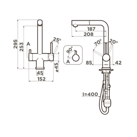 Однорычажный с дополнительным краном для питьевой воды и выдвижным изливом