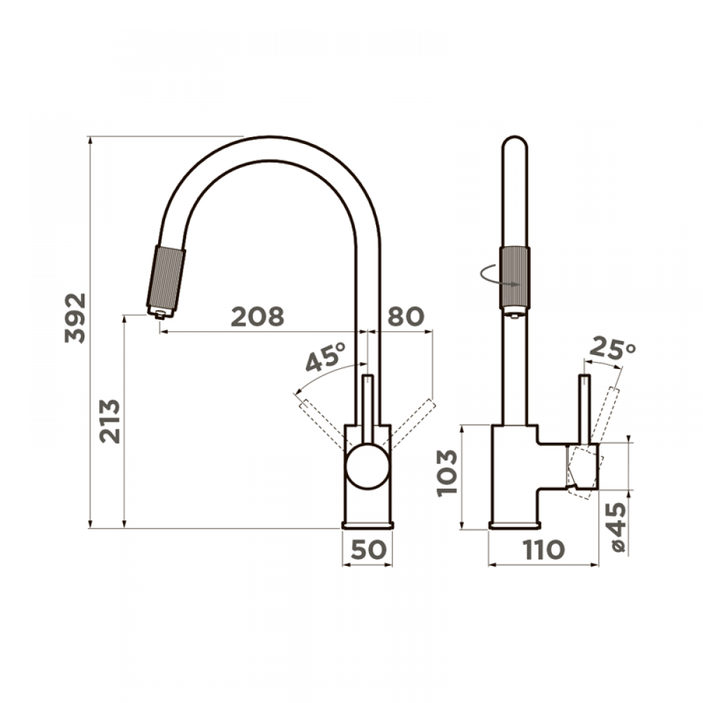 Угол поворота излива