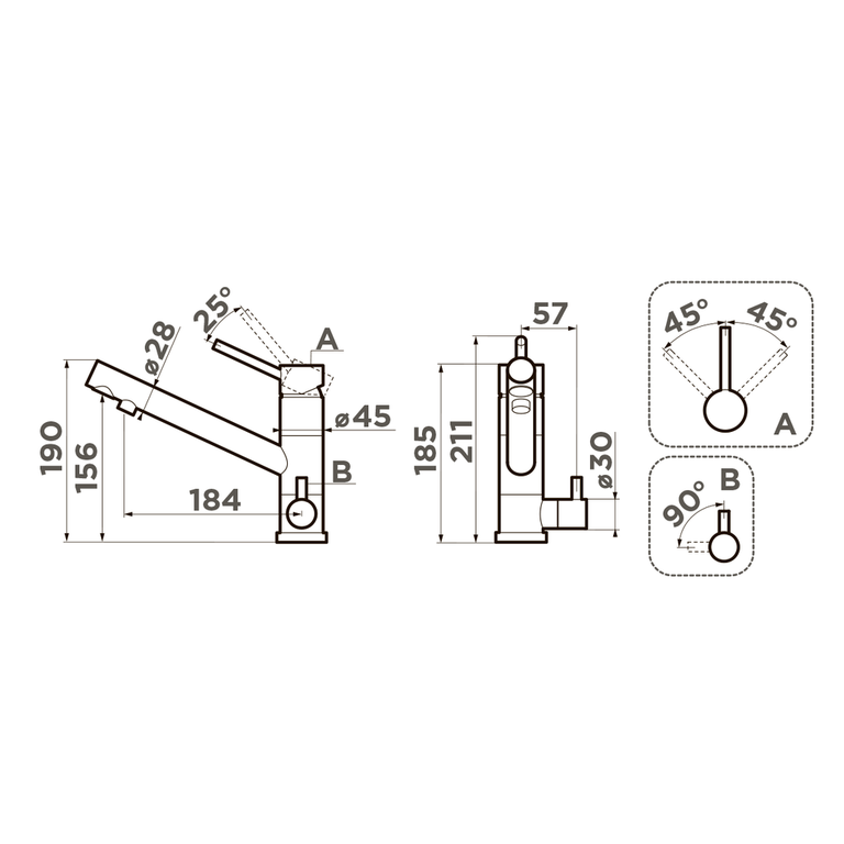 Высота смесителя 190 мм