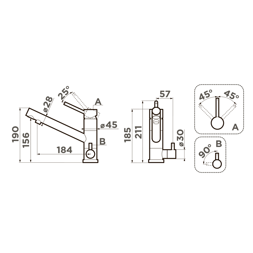 Высота смесителя 190 мм