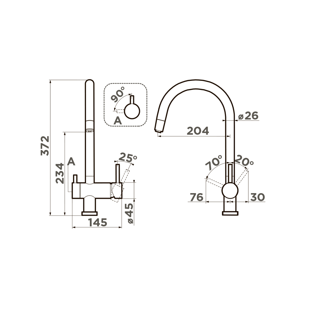 Угол поворота излива