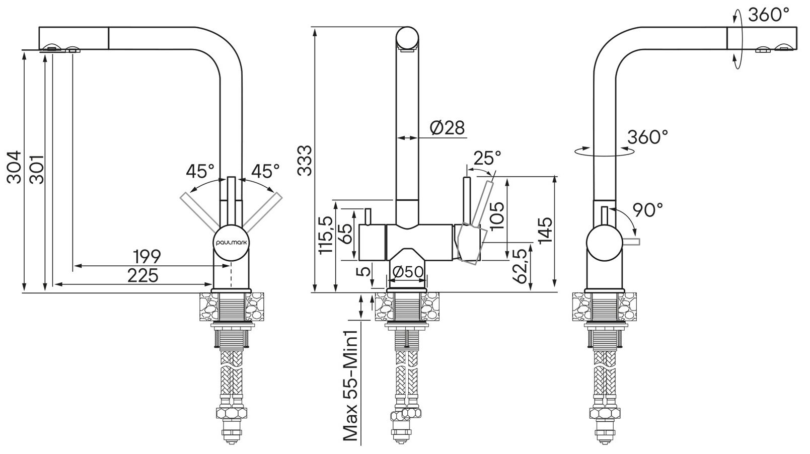 Вращение излива поворотный