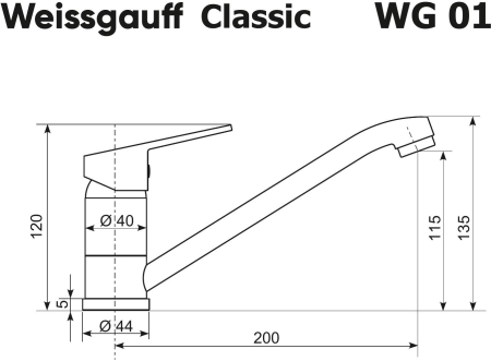 Установка: вертикальная, на мойку