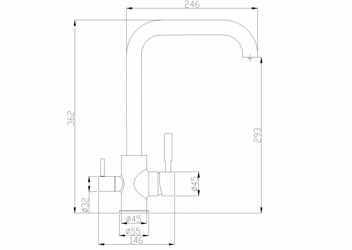 Смеситель, аэратор, гибкая подводка 45 см ½", комплект крепежа, переходник-цанга для подключения фильтра, гарантийный талон