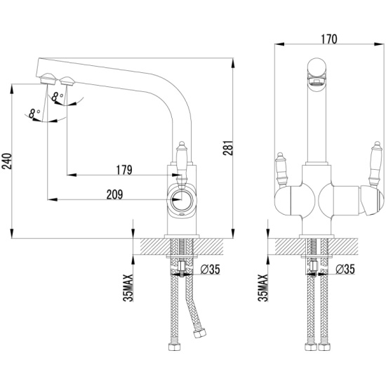 - Стандарт подводки:1/2"
