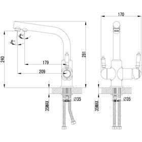 - Для крана с питьевой водой: кран-букса с керамическими пластинами (угол поворота – 90 градусов)