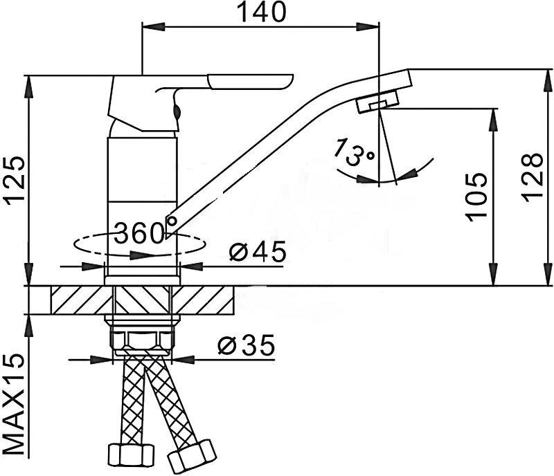 В КОМПЛЕКТЕ:Гибкая подводка 1/2